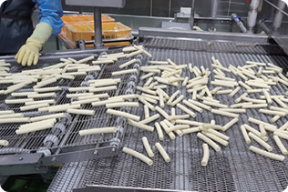 에어노즐을 제품 상부 전체에 부착하여 냉풍이 균일하게 불어주어 제품의 동결이 빠르고 균일하다.