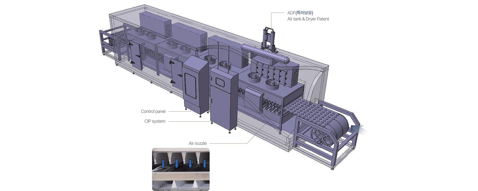 동결기 가동 중에도 벨트 세척이 가능하다.